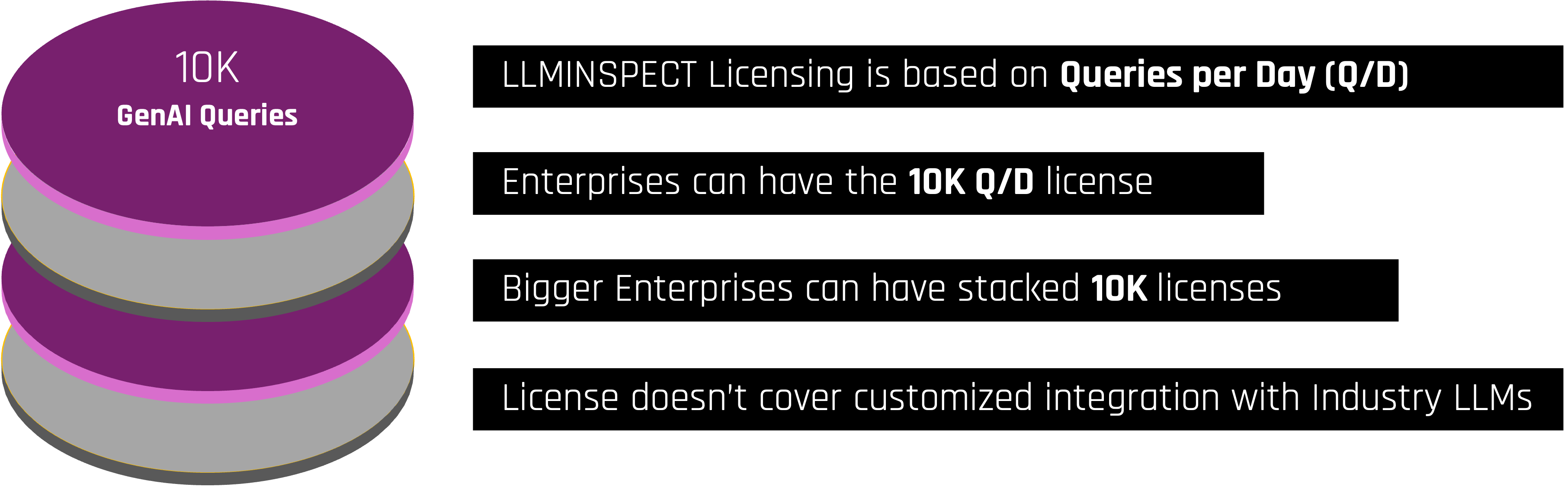 LLMInspect Gateway platform requires a valid license to operate in an on- perm or SAS environment. LLMInspect basic license covers 10,000 enterprise GenAI queries per day. Larger organizations can stack multiple licenses to get higher queries per day volume.